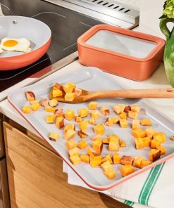 nossa assadeira média de 15 x 10 “é tudo que você precisa para assar sem complicações: use para meia dúzia de biscoitos, batata-doce frita e muito mais. Apresentando um interior revestido de cerâmica naturalmente liso e não tóxico, esta assadeira torna o cozimento saudável (e a limpeza) mais fácil do que nunca.